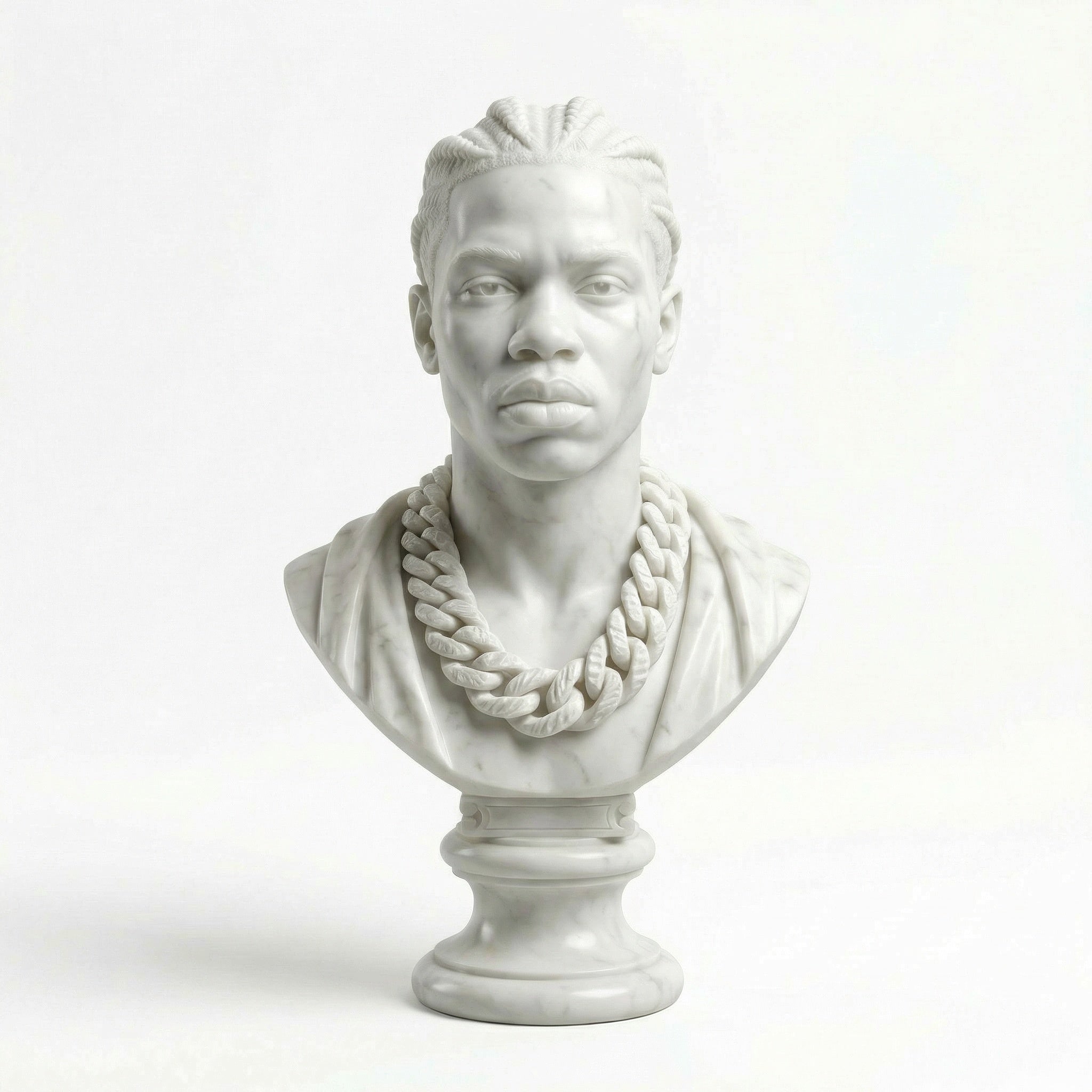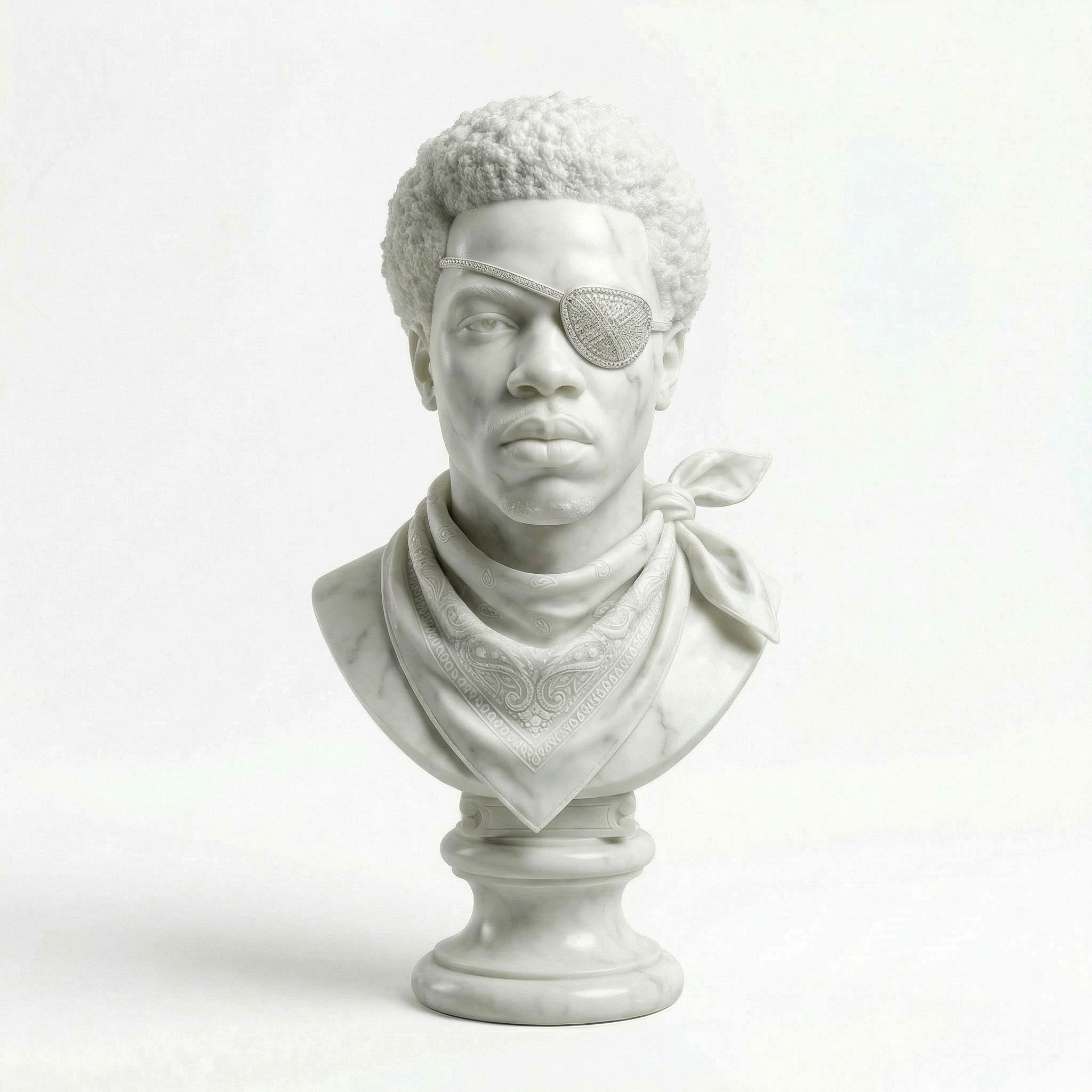 Remonumental translates contemporary Black presence into the visual language of classical monument. The marble bust — historically reserved for empire, aristocracy, and inherited power — is reauthored through subjects long excluded from that tradition.